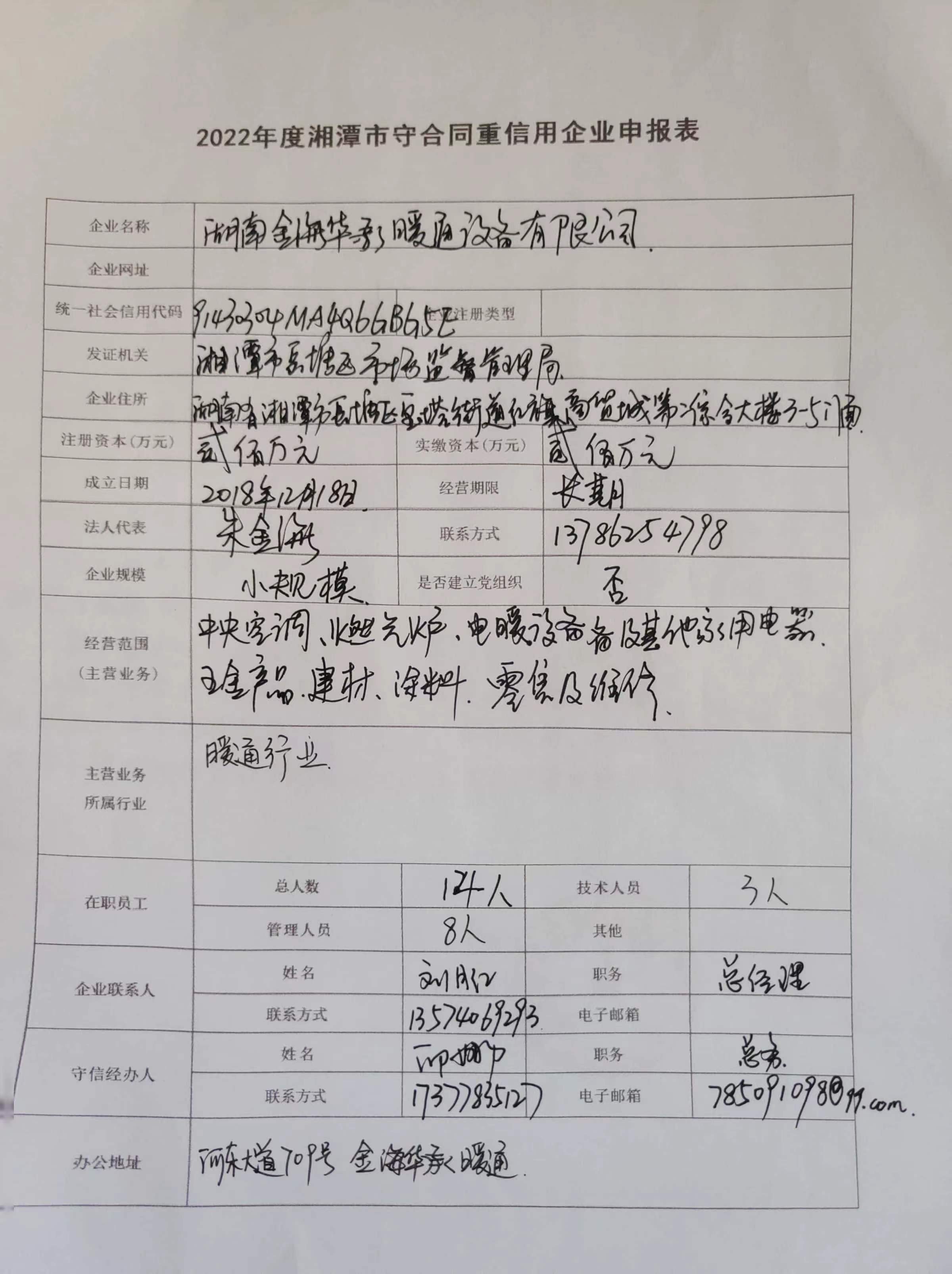 本企業(yè)根據(jù)《湘潭市守合同重信用企業(yè)申報規(guī)定》等編制 2022 年度企業(yè)信用報告書,并保證本報告書內容真實、準確、完整。